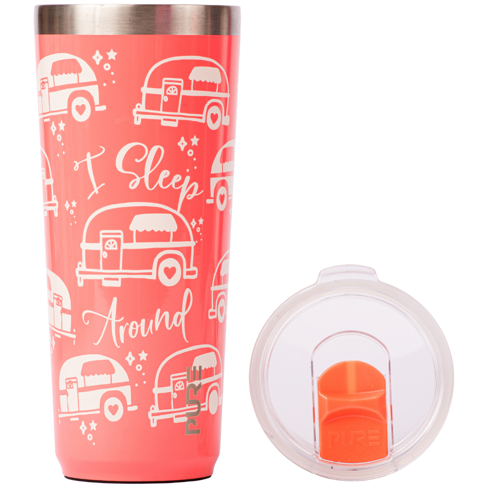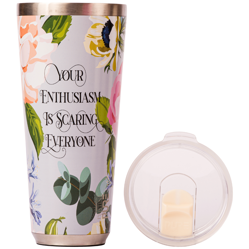 Get a tumbler that matches your vibe. Our PURE Drinkware’s 22oz and 32 oz tumbler is the perfect companion to help you keep your cool with an icy beverage at a backyard BBQ or for running errands all day. If you need enough caffeine, the size of a small child, to get through a busy day, this makes for the best coffee tumbler, keeping your brew at the perfect temperature for hours. For whatever your drink of choice is, keep your beverage hot or cold and your sass intact with this stainless steel tumbler.