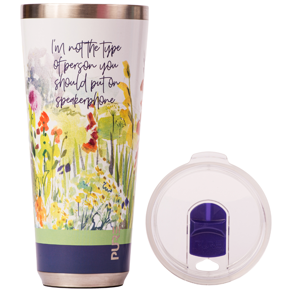PURE Drinkware’s “Twistie” 32oz tumbler featuring the sassy saying “I’m Not the Type of Person You Should Put on Speakerphone” is for the sassy friend in your life with a volume down button. With a soft floral design, this is perfect to use for an iced water or a hot coffee tumbler. Whether you need a fresh hot brew for morning commutes or want to keep a spritz as cold as ice on the hottest beach day, this tumbler brings quirky charm to every sip.